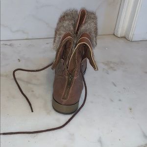 Brown bootie/combat boot with folded over fur lining. Worn 1x!