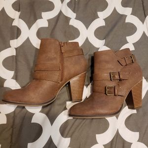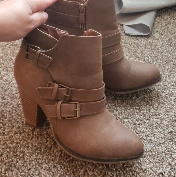 Taupe booties with a 3 inch heel. Like new, the heel is too tall for me.