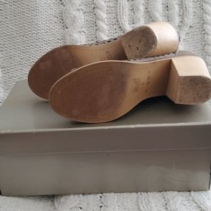 Taupe/Tan Wood Heeled Sandal