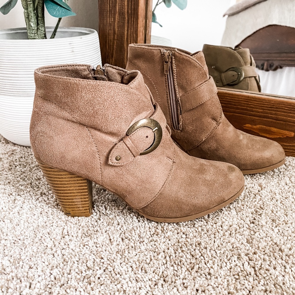 Lightly-worn faux suede booties.