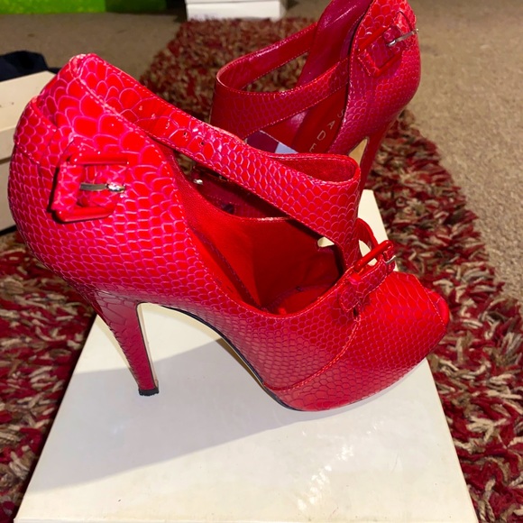 Snake skin patent leather bootie. Like new worn once.