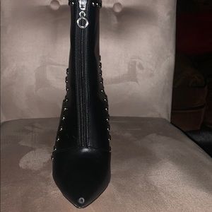Black studded shoe with heel out and zip in front