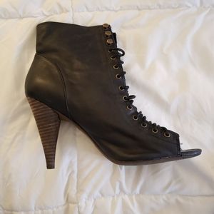 Genuine black leather booties. Lace-up front. 4-inch heel