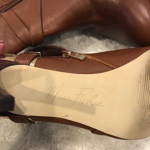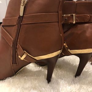 Camel colored bootie with gold accent hardware worn once