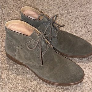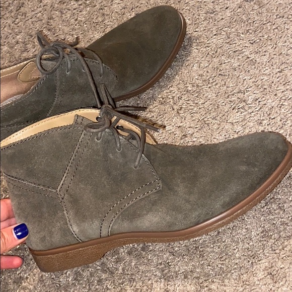 These beautiful military green ankle boots have only been worn once. They were a little narrow for my feet (I have very wide feet) and decided to size up and buy another pair because they’re so beautiful!