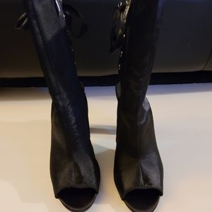 Satin Peep toe, back tie bootie. Worn once, great condition. 4 inch heel