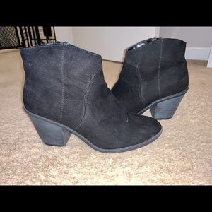 Black booties. Inside zipper. Chunky heel makes them super comfy to walk in. NWOT.