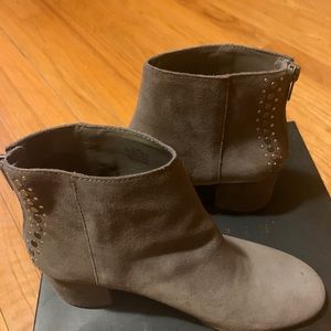 Great condition booties grey color with zipper in back surround by studs. Only wore once.