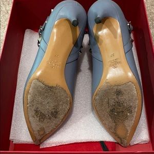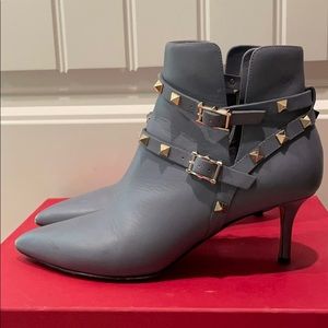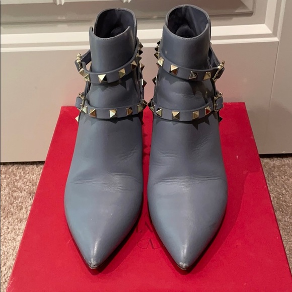 Valentino booties in beautiful bluesh grey color. Worn few times and scuffed bit.