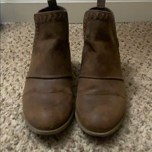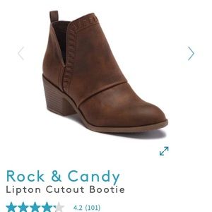western style ankle bootie constructed from a faux nubuck leather with side cut-out.