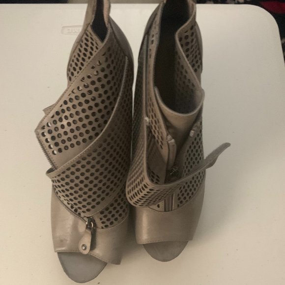Worn once. Grayish-Tan bootie. With a Zipper and strap. Very Cute