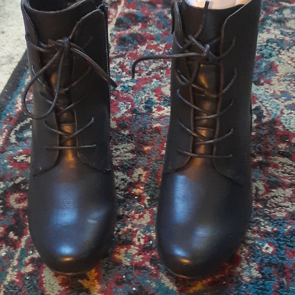 Black leather lace up booties with side zipper