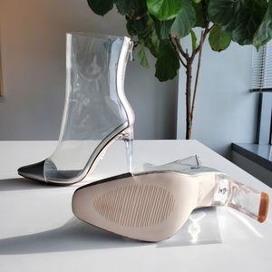 Clear booties. Very fashion foward, trendy stylish booties. Clear with silver. Heel is 4 inches.