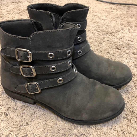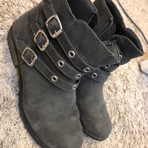 Cute ankle booties with silver buckle details. Comfortable low rubber heel
