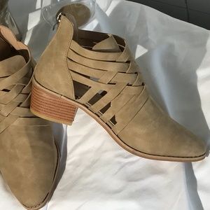 Beige suede booties size 8. Props not included. 2” wooden heel