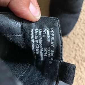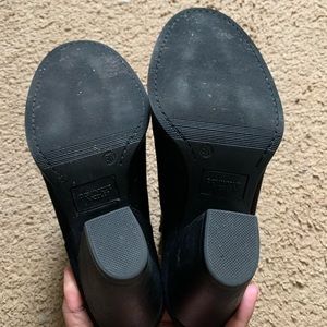 Black booties. In a size 8 wide. Perfect for wide feet. Have been worn a couple of times. Very comfy. It is broken in so there are scratches and some sign of wear. Basically perfect!