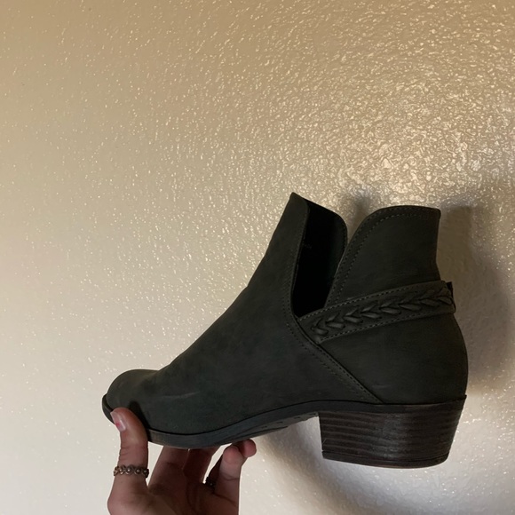Grey booties with braided heel detail