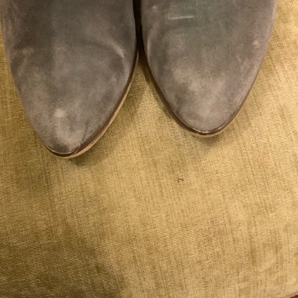Gray colored bootie in good condition but have been won and there are signs of wear, they are slightly distressed, so the wear does not look abnormal