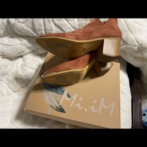 Mi im cognac booties. Super cute for work, date night, girls night out! Wears perfectly with fitted jeans, wide legged jeans, jean shorts, skirts and dresses.