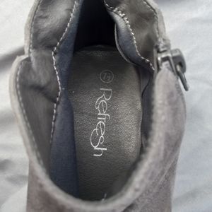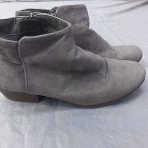 Grey suede booties with small heel