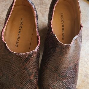 Lucky brand booties. The color is avery drak red with black. Never worn.