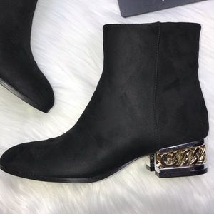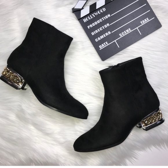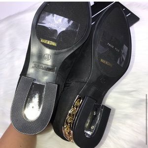 Never worn • no damage • bamboo • faux suede • chain heel