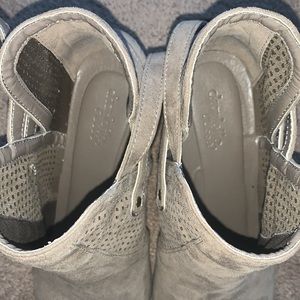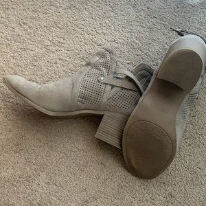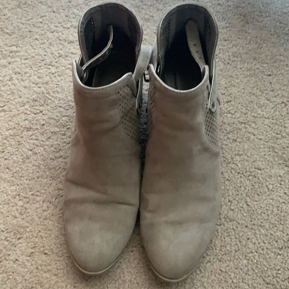 Women’s faux suede grey/brown booties. Heels are about 2-3inches.