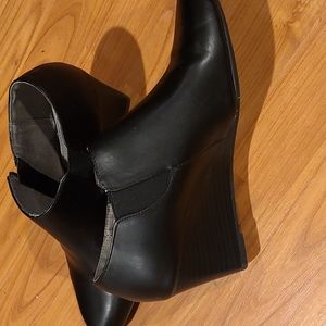 ladies Size 8 leather black booties. side zip. only worn 1 time indoors. like new condition.