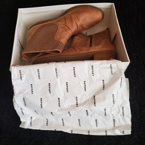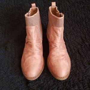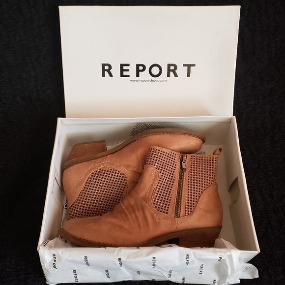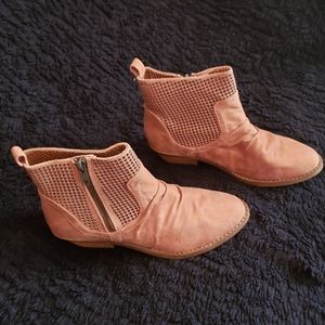 Laser cut faux suede upper. Laser cut out detail. Rounded toe and 1 3/4 inch heel. These run a tad narrow, the length is true to size. New condition. Bundle for further discount.