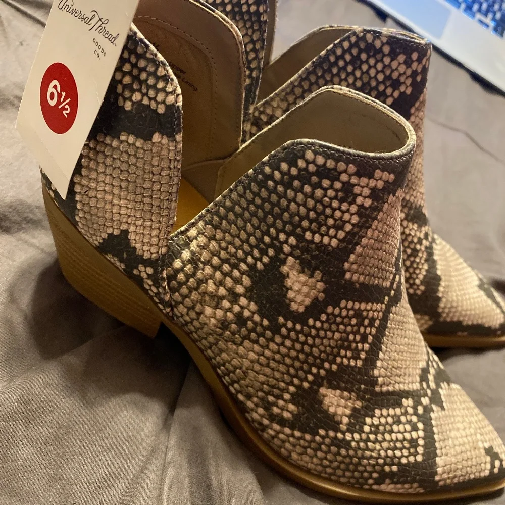 Snakeskin Booties new with tags from Target's brand Universal thread. Never worn before. Size 6 1/2.