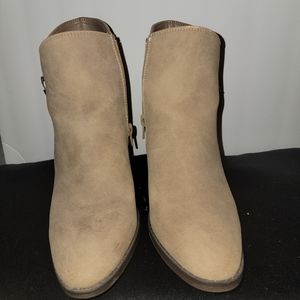 Parker and Sky booties, size 9. Heels are 3.5 inches. Worn few times, couldn't break them in, heel was too tall for my comfort. Discoloration on the inner side of boots, from rubbing shoes together.