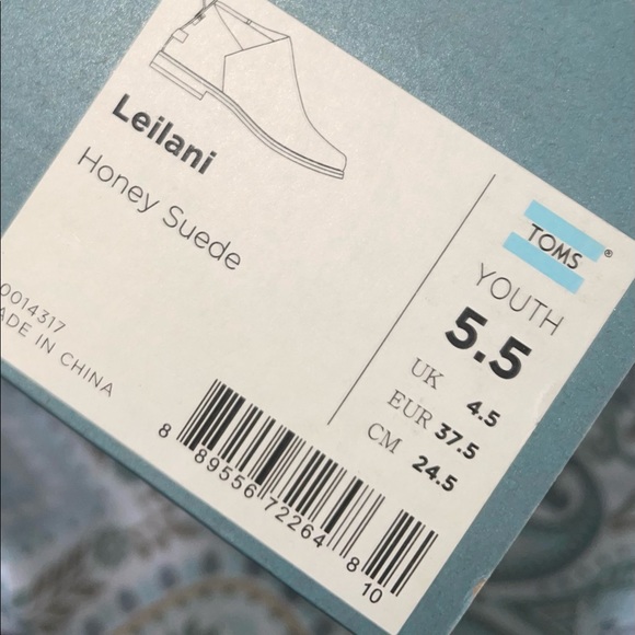 Toms booties. Brand new. Size 5.5 Youth, Equivalent to size 7.5 women. Price is final. Next day shipping