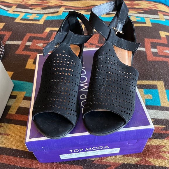 Black small heel booties never worn. Still have original box.