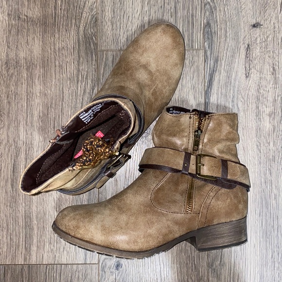 Pop Ames Brown Ankle Boot, zipper detail can be zipped up, or left down to expose knit detail. Inner side zipper to get boots easily on and off. Hardly worn.