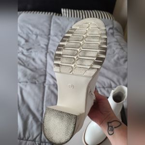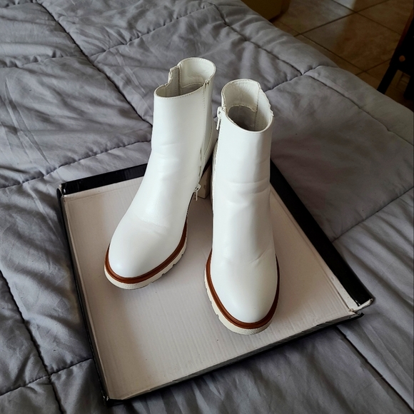 white casual booties! worn once ! you can wear with a dress, leggings, or jeans.