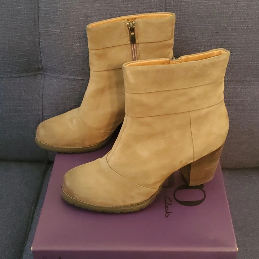 Indigo by Clark's- leather booties, size 8m, light grey,