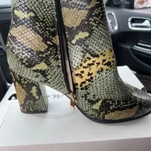Green multi color snake skin boot. This shoe runs small. Someone that wears a size 10 can definitely fit these. Very comfortable.