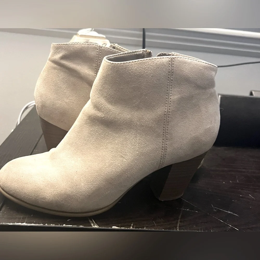 Old navy booties. Super comfortable side zipper. Minimal discoloration on the toe from wear. Otherwise, good condition.