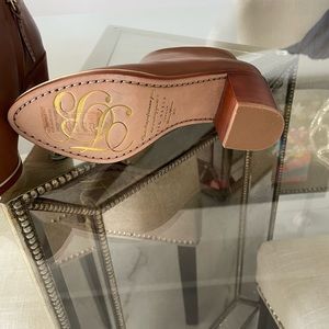 In like new condition and extremely comfortable. Leather with gold trim detail.