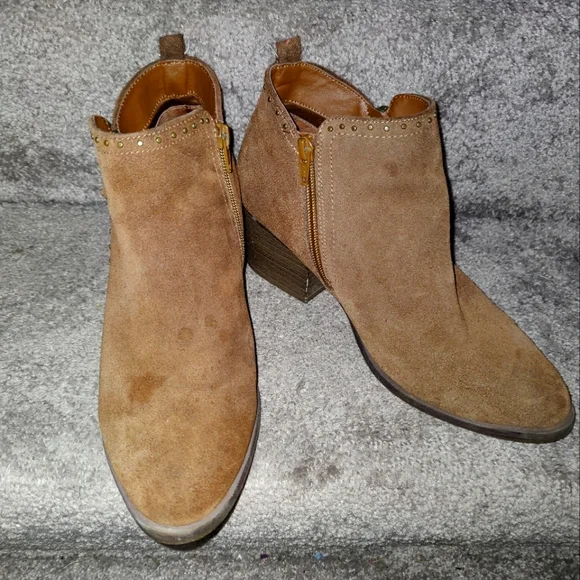 A brown chunky heel, work mini gold rhinestones, broken in just for you. These are in good condition.