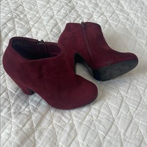 Maroon velvet bootie! A few minor spots listen in photos.
