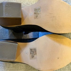 Gray booties. The heel height is approximately 2 1/4 inches. I normally wear an 8 1/2 and I thought I could make these work but they are a bit too big for me. So they’ve only been worn a few times.