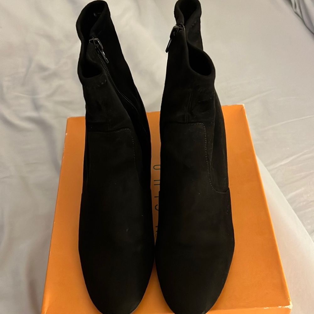 Black multi fabric booties. Worn lightly. In great condition.