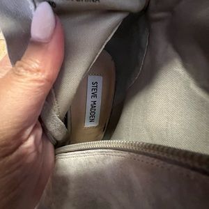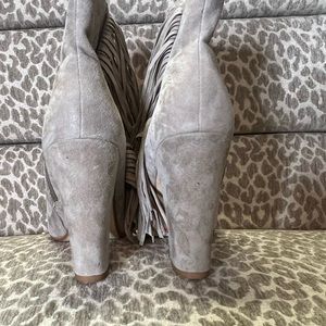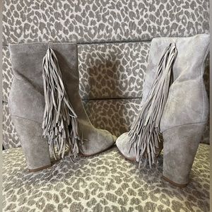 Steve Madden Fringe Ankle Boots with peep toe. One heel has a few nicks on the heel other than that she ready for you date night out!