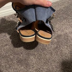 Worn only a handful of times. Unique sandal/bootie with exposed heel. Suade
