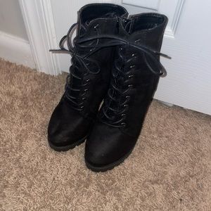 Black lace up bootie,4.75 inch chunky heel