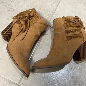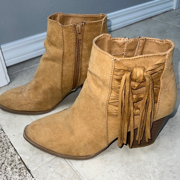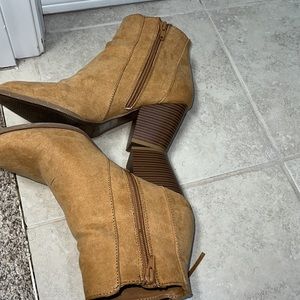 Comfortable booties from Charlotte Russe low heel. Still in great shape.light camel tan color