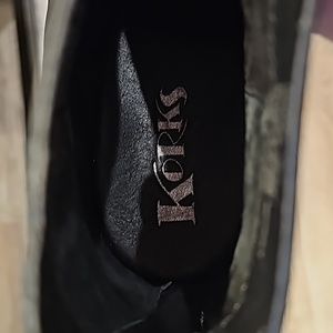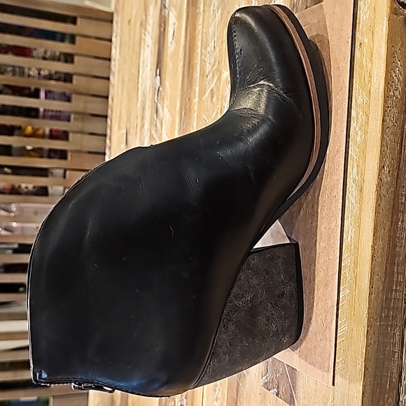black Korks booties 3in heels. zipper in the back.