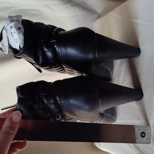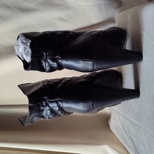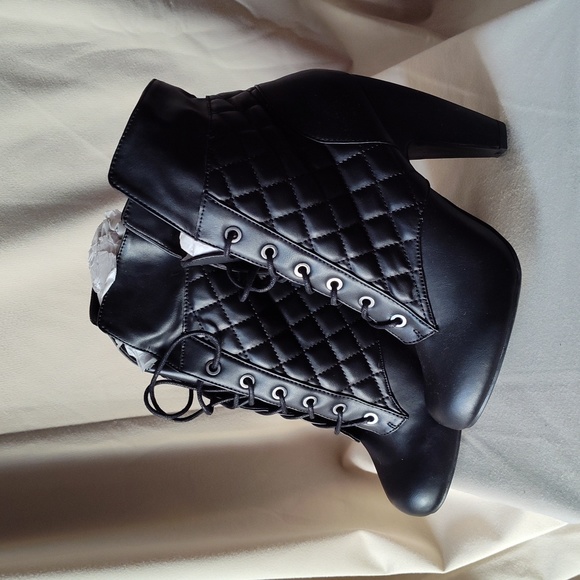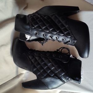 high heels quilt pattern black faux leather high heel booties never been worn lace up very sexy fits more like a 9 in my opinion