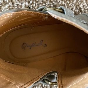 Excellent used condition booties. One flaw that is pictured. Size 5.5, I usually wear a 6 and these fit. I don’t wear these enough to justify keeping them.